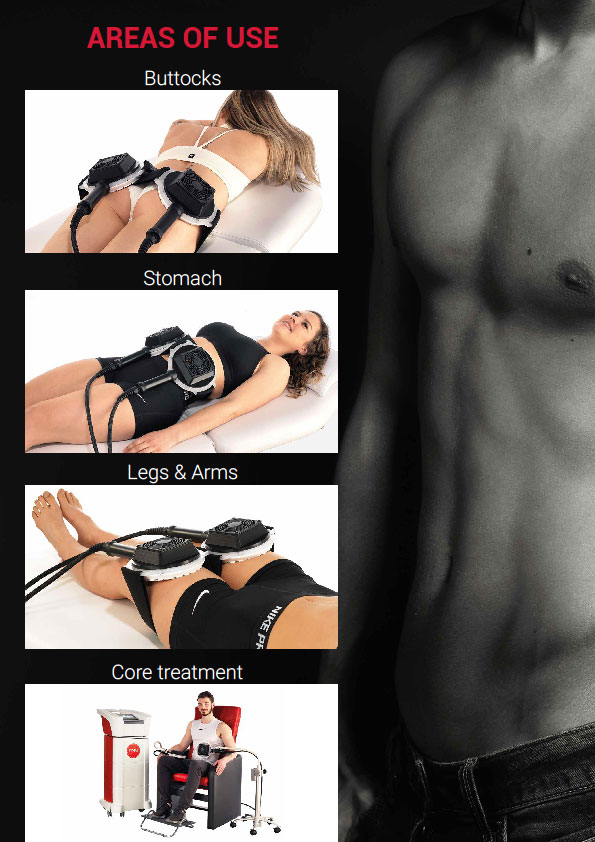 衣服と体の皮膚を通して伝播する「磁場」が運動ニューロンを刺激し、筋肉の収縮を刺激することで機能します。EMSよりもより深部の筋肉(皮下7cm)まで強力に作用し、筋肉を鍛えながら脂肪を燃焼させることを可能した非侵襲的でダウンタイムのない施術法です。痛覚を刺激しないため、従来の電気を利用した痩身機器と比べ、痛みが少ない特徴があります。